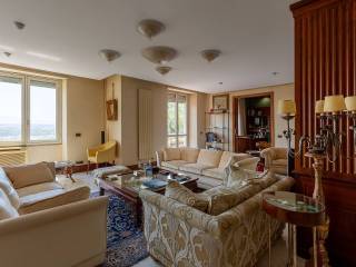 € 4.900/meseAppartamento via Aurelio Saffi, Monteverde Vecchio, RomaElegante appartamento panoramico in una delle vie più esclusive di Monteverde Vecchio. Situato tra Villa Doria Pamphilj e Trastevere, questo appartamento di rappresentanza, di circa 170 mq, si trova al terzo piano di una palazzina indipendente anni '50, dotata di ascensore. L'immobile è arredato con gusto classico e pregiati pezzi d'antiquariato e si distingue per raffinatezza, luminosità e silenzio. La vista panoramica e suggestiva a 180° su Roma rende la proprietà unica. All'ingresso un doppio salone di rappresentanza, ideale per ricevere ospiti o per eventi privati, a cui segue una sala