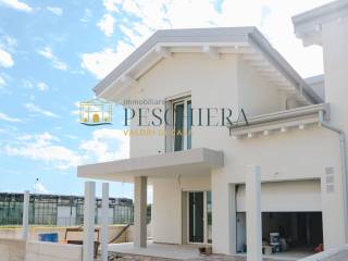 € 580.000Villa unifamiliare via Verona 5, Valeggio sul MincioValeggio sul Mincio, in un'elegante zona residenziale comoda a tutti i servizi, proponiamo una villa singola disposta su due livelli oltre al piano interrato. L'immobile, di recente costruzione e curato in ogni dettaglio, si sviluppa su due piani fuori terra. L'ingresso indipendente, raggiungibile tramite un raffinato vialetto, conduce all'ampio soggiorno di circa 30 mq, illuminato da una porta finestra che apre sul giardino privato e sul portico coperto. La cucina, abitabile e separata da una porta scorrevole, dispone anch'essa di un accesso diretto all'area esterna. Il piano è completato d