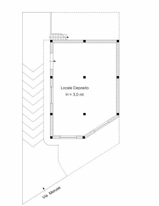 Tale soluzione, con una metratura totale di 425 mq, si sviluppa su due livelli ed è composto al piano terra da un ampio ed unico vano, tre ripostigli e bagno.