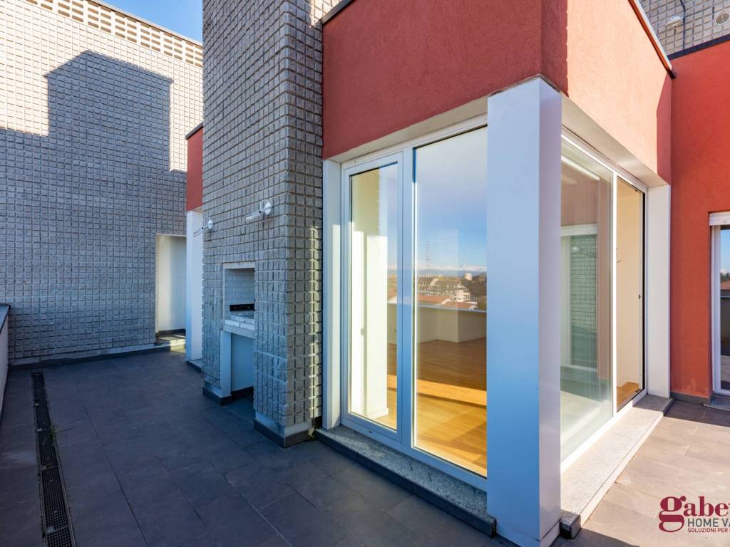 Proponiamo in vendita ampio trilocale con studio di 184m al piano sesto così composto: ingresso su soggiorno completamente affacciato su ampio terrazzo che circonda interamente l'appartamento, cucina abitabile, camera matrimoniale con cabina armadio e bagno privato, seconda camera con cabina armadio, completano l'appartamento altri due sevizi e comodo ambiente utilizzabile come studio affacciato sullo splendido terrazzo .