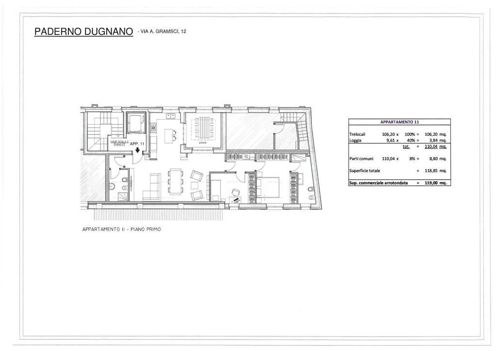* NUOVE COSTRUZIONI * PADERNO CENTRO VIA GRAMSCI 12 - RESIDENZA "LE CORTI DEI MARCHESI" - 3 LOCALI 120 MQ - RIF App 11 - Nel pieno centro di Paderno Dugnano, in contesto di pregio storico appartenuto a famiglia nobiliare del territorio, e a pochi passi dalla stazione ferroviaria delle Trenord, proponiamo 3 locali con loggia di prossima realizzazione. L'immobile è composto da: soggiorno con cucina open( possibilità di cucina abitabile) , ampia camera matrimoniale con bagno privato finestrato, 1 cameretta e bagno con doccia . L'appartamento verrà realizzato come da planimetria di progetto allegata. A completare la soluzione una cantina di proprietà. Possibilità di box singoli o doppi a parte. Consegna fine 2025. Le abitazioni saranno realizzate con tecnologie di ultima generazione e l'impiego delle più avanzate tecniche costruttive, che hanno come obiettivo principale il più alto livello di comfort possibile nell'ottica di bassissimi consumi e della miglior resa energetica, nel rispetto dell'ambiente, con il positivo risvolto che bassi consumi significano anche bassi livelli d'inquinamento. Gli appartamenti saranno altresì dotati di innovativi sistemi di domotica ed isolamento oltre che termico anche acustico. Finiture di pregio, possibilità di personalizzazioni interne da capitolati di alto livello e serramenti con vetri basso emissivi. Progetti e planimetrie visionabili in ufficio, previo appuntamento, al numero 02/99040180 - 393/9364427 oppure tramite mail all'indirizzo ag.paderno@******..