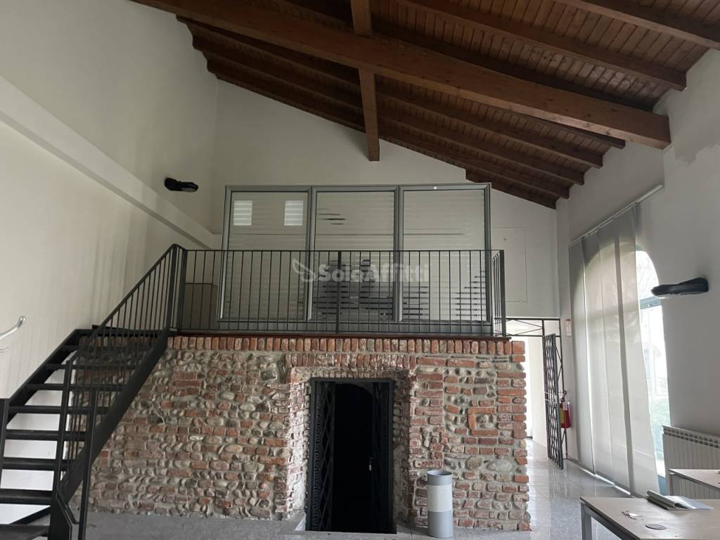 Attualmente l'immobile si compone di uno spazio open space con soppalco, due ufficio e i servizi. Sotto il soppalco raggiungibile da una scala a vista, troviamo un'antica ghiacciaia con mattoni a vista.