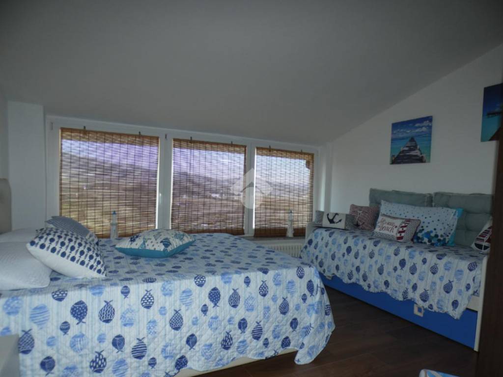 Al piano terra troviamo un ingresso ampio, salone living con angolo cottura, bagno e due camere da letto; al primo piano, cucina abitabile da cui si accede ad un grande terrazzo con vista panoramica, salone, due camere da letto e bagno; al piano secondo (locale mansardato alto) zona giorno unica living con angolo cottura, due camere da letto matrimoniali, bagno con balcone.