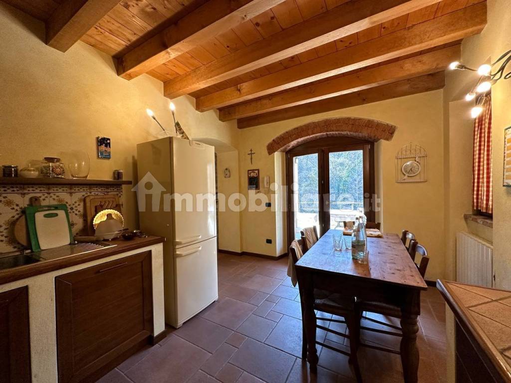 In posizione tranquilla e panoramica vendiamo antico cascinale recentemente ristrutturato, circondato da 20000 mq di terreno di proprietà, completamente recintato e con piante di varie essenze e 110 piante di nocciolo, parte a bosco e con fonte d'acqua sorgiva nella proprietà. L'abitazione su tre livelli è composta al piano terra da ingresso, veranda, cucina con ampio porticato, pranzo, salotto e bagno. Al primo piano due ampie camere con terrazza, bagno. Al secondo piano ulteriore camera con bagno. In aderenza al fabbricato ampia legnaia con due posti auto. Impianto di riscaldamento con Gpl oltre a due camini e stufa a pellets.