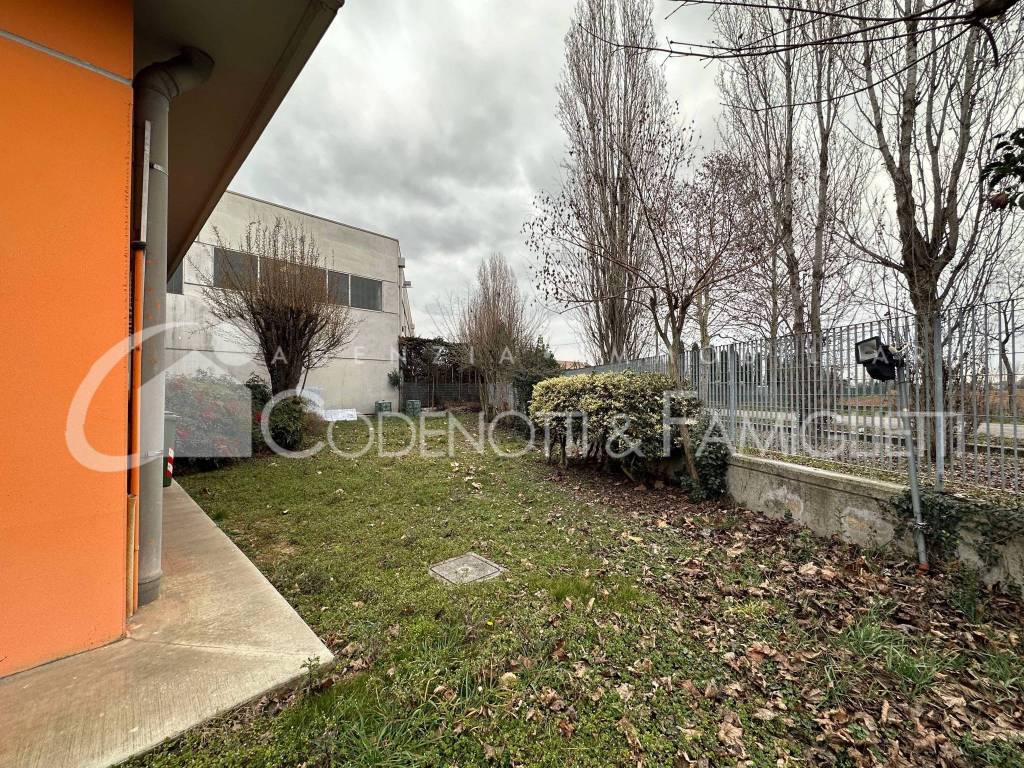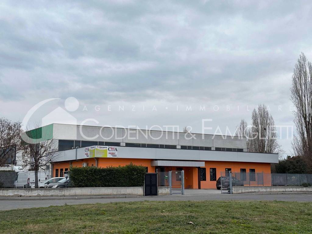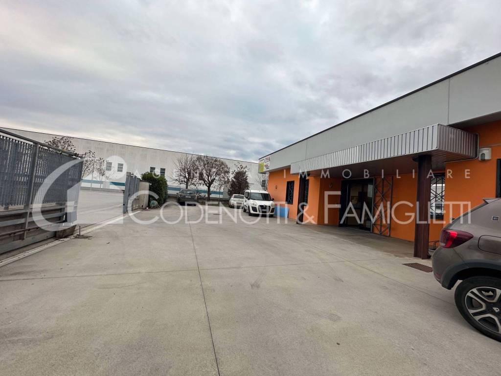 Attualmente l'immobile è cosi composto: entrata, ufficio-reception, due locali attualmente adibiti a laboratori e doppi servizi a norma di legge, all'esterno ampio piazzale pavimentato e giardino con ulteriore possibilità edificatoria.