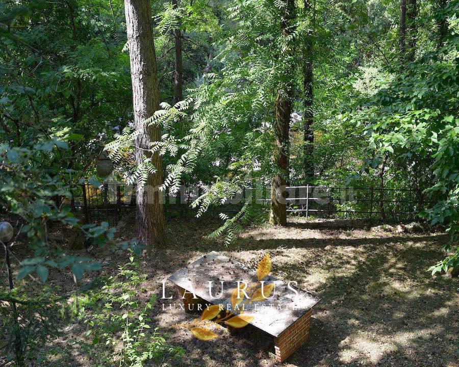 Circonda la proprietà un parco di 8000 mq dove sorgeva in precedenza anche un’area dedicata ad un laghetto con le ninfee (oggi modificabile eventualmente con differenti soluzioni moderne) Ulteriore fetta di terreno disponibile di fronte alla proprietà per la realizzazione dei posti auto.