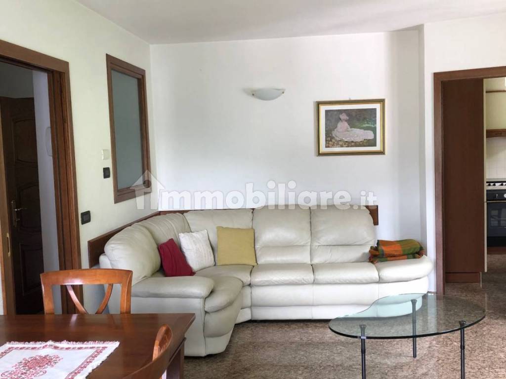 Il primo appartamento si trova a piano primo ed è composto da un'ampio e luminoso soggiorno con accesso al terrazzo e con angolo cottura separato.
