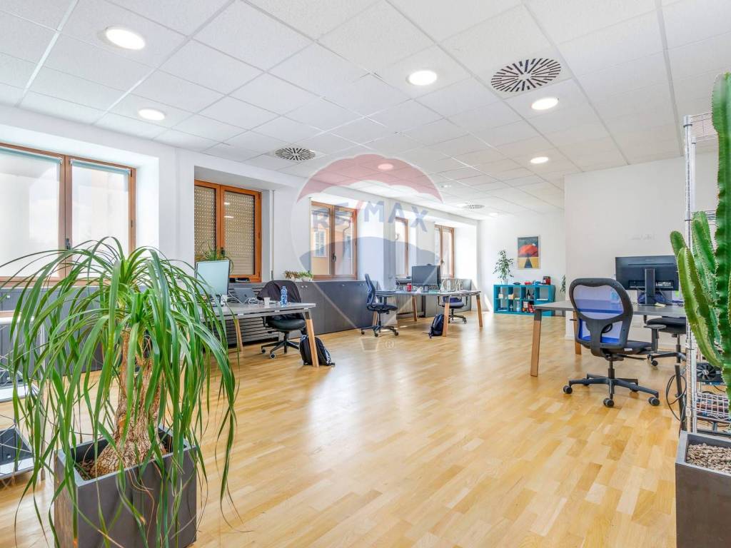 L'ufficio potrebbe diventare un luminoso appartamento con grande soggiorno, cucina a vista, tre camere, due bagni e una lavanderia. Una bella soluzione per una famiglia che cerca le comodità del centro città. Possibilità di posto auto