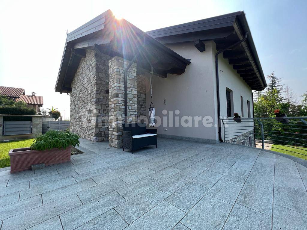 Immersa nella tranquillità della campagna, questa villa di nuova costruzione in classe energetica A++ è stata realizzata con materiali di alta qualità e rifiniture di pregio. Libera su quattro lati, offre una splendida vista sul verde circostante, visibile grazie alle ampie vetrate in triplo vetro. La casa si sviluppa su tre piani: al piano terra, un salone doppio con una scenografica scala elicoidale, cucina abitabile, due camere da letto, bagno e disimpegno con armadi su misura. Il piano sottotetto comprende due camere e un bagno. Il seminterrato ospita una taverna, lavanderia, locale tecnico con caldaia a condensazione, serbatoio per l’acqua calda collegato ai pannelli solari, e una cantina.