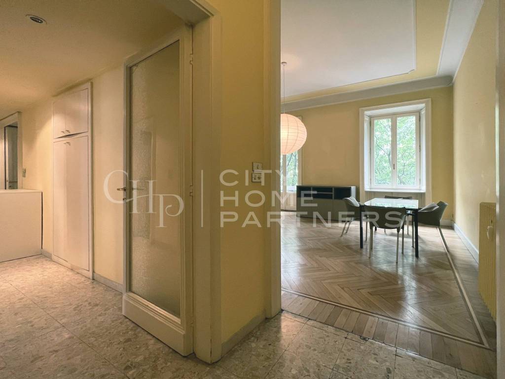 In una delle zone più tranquille e ricercate di Milano, inserito in uno stabile signorile dei primi del novecento, ampio trilocale al secondo piano.