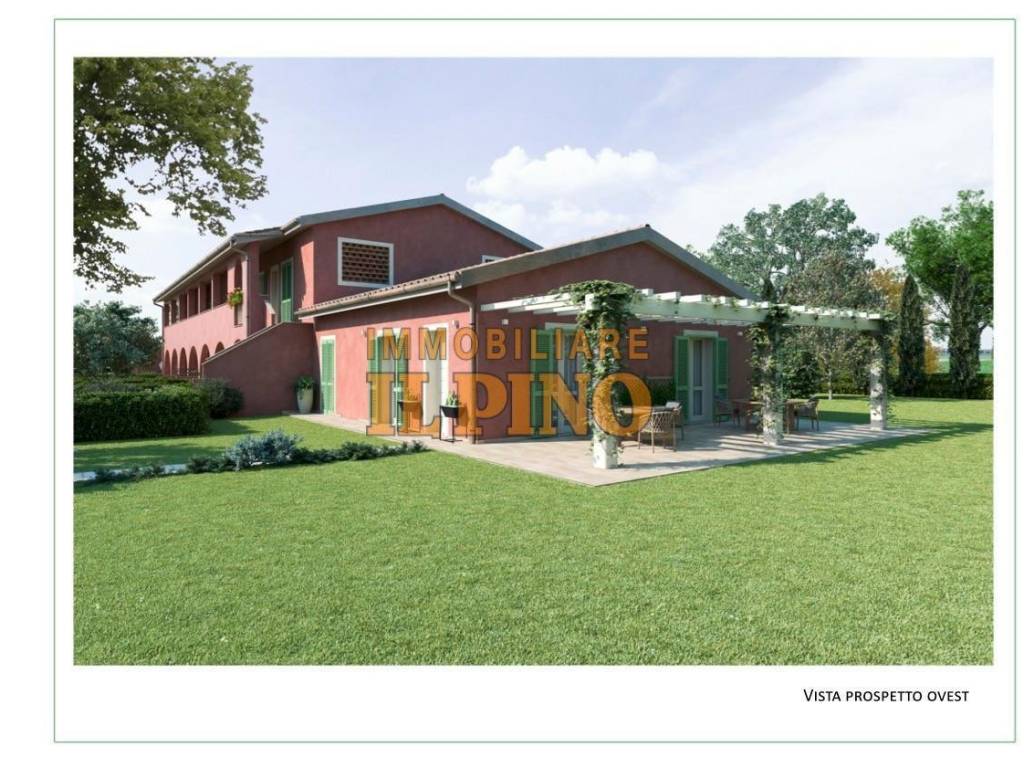 Fornacette nostra esclusiva, Nuovo intervento edilizio vicino al centro del paese Villetta angolare indipendente tipo viareggina di mq. 107 oltre mq. 36 di mansarda/soppalco e mq. 40 di loggiato con accesso sia dal soggiorno che dalla cucina, il tutto oltre mq 1150 di giardino esclusivo ottimo anche per una piscina, composta da ingresso-soggiorno di mq. 23, cucina abitabile mq. 13 disimpegno notte, due camere, studio due bagni, ripostiglio esterno, casina in legno con pergolato, due posti auto Ottime rifiniture con fotovoltaico classe energetica A3 - Rif. 659