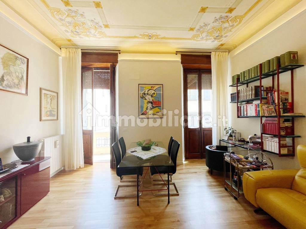 L’appartamento è stato completamente ristrutturato nel 2020, mettendone in risalto le finiture di alta qualità che lo rendono un oggetto unico nel suo genere. I controsoffitti con luci a led e i pavimenti in legno di rovere conferiscono un tocco moderno agli interni, mentre i soffitti affrescati, rimasti intatti durante il restauro, valorizzano ulteriormente l’appartamento così come le porte in legno a doppia anta, originali dell'epoca, che creano un'atmosfera sofisticata ma al tempo stesso calda e accogliente.