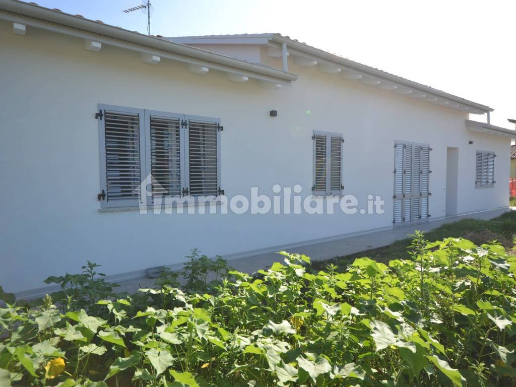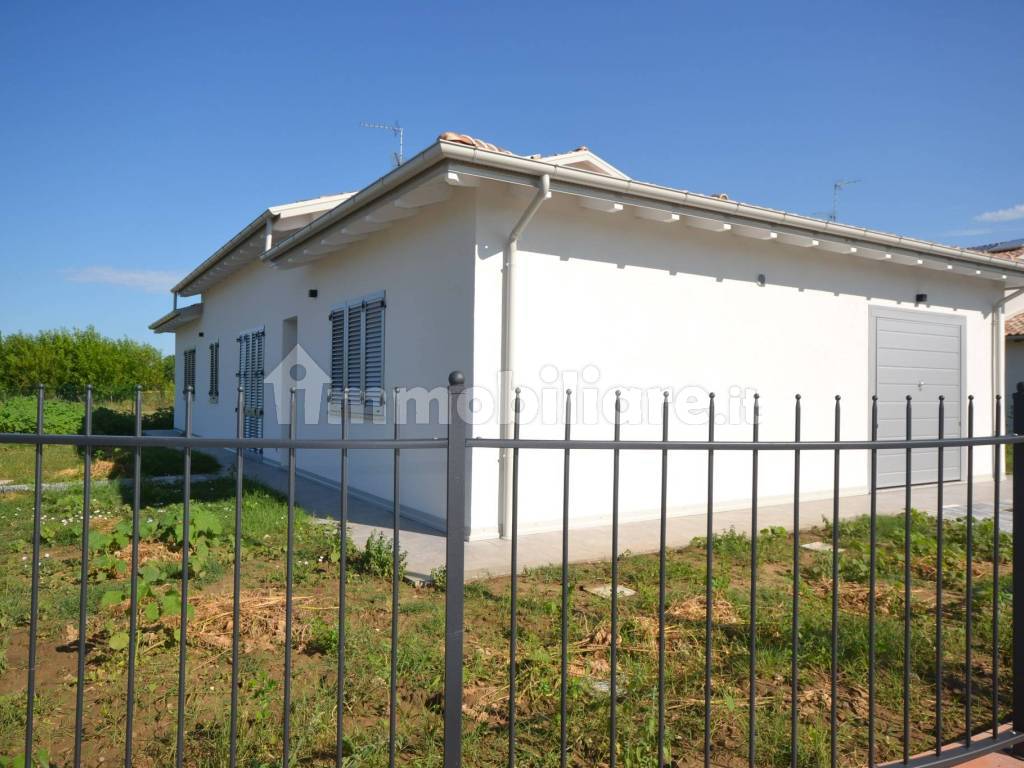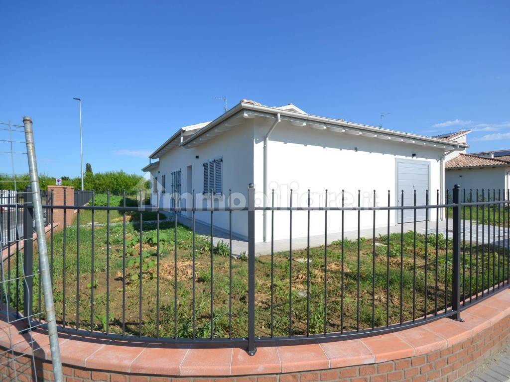 VENDESI ULTIMA VILLA SINGOLA CON GIARDINO ESCLUSIVO - NON GAS - Facente parte di una nuova Lottizzazione molto Signorile composta da Piccole Palazzine e Ville indipendenti - E' possibile Prenotare la Villa adesso per poterla inaugurare tra 18 mesi. Si compone come segue: Disposta interamente al piano terra con ingresso nel soggiorno, cucina abitabile, disimpegno notte, tre camere, due bagni, giardino privato, Autorimessa con lavanderia, Pergolato. OGGI VIVIBILE IDENTICA ALLO STATO GREZZO. La villa può essere personalizzata nelle finiture e nella disposizione interna.