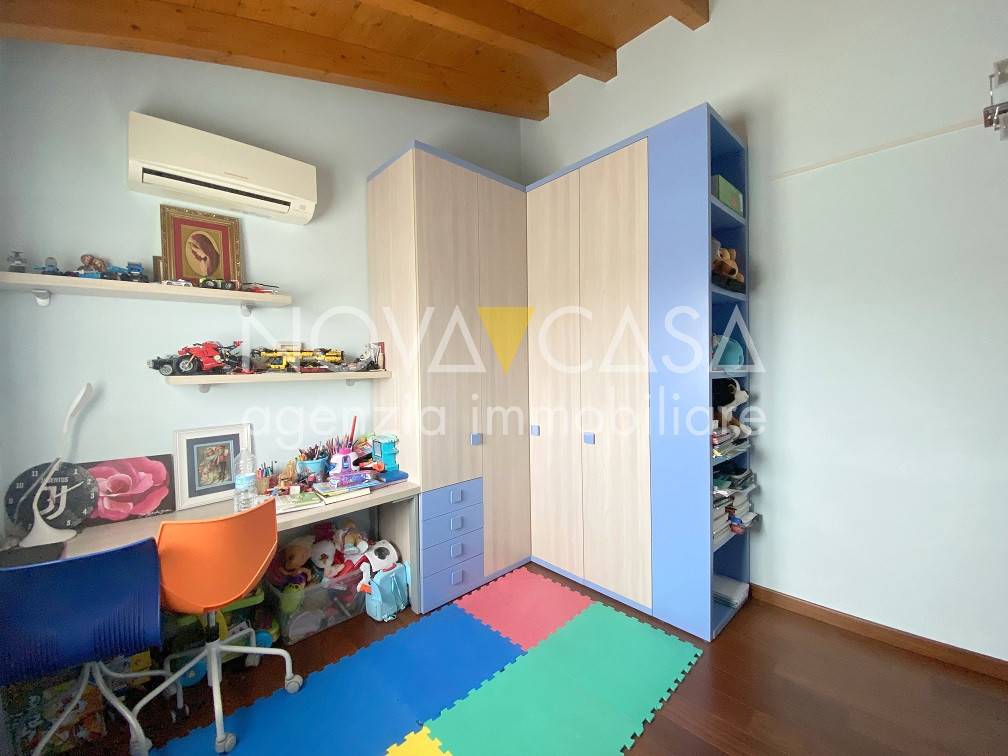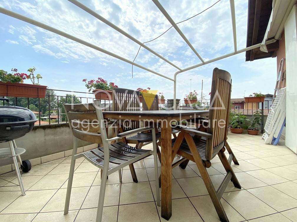 Appartamento posto al secondo ed ultimo piano servito da ascensore, composto da ingresso, soggiorno con affaccio su terrazzo di circa 20 mq, cucina, disimpegno, due bagni, spaziosa camera singola, camera matrimoniale con cabina armadio, soppalco e balcone. Al piano seminterrato dispone una spaziosa cantina, box singolo e posto auto coperto.