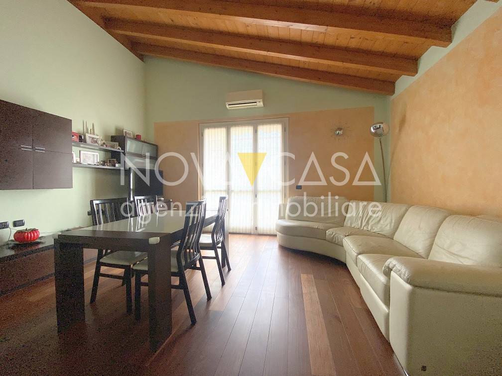 L'immobile si trova in ottime condizioni e presenta solaio travi a vista, pavimenti in parquet zona giorno e zona notte, gress porcellanato nei servizi. Presenta inoltre serramenti in legno con doppio vetro, zanzariere, ante in alluminio, porta blindata, aria condizionata, allarme e tenda da sole elettrificata.