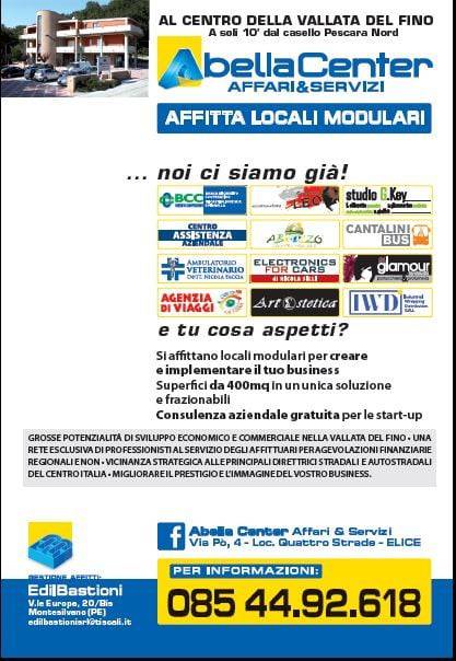 Elice (PE) a 12' dal Casello Pescara Nord/Città S. Angelo, ABELIA CENTER AFFARI & SERVIZI AFFITTA un locale NON RIFINITO di Mq.180 (anche frazionabile) posto al Piano Terra per uso ufficio o attività commerciale. Trattasi di un complesso edilizio di ESCLUSIVO PREGIO ARCHITETTONICO, molto curato anche sugli esterni dotati di arredi, verde ed AMPI PARCHEGGI. Situato in una zona di grosse potenzialità di sviluppo nel comune di Elice, VICINISSIMO AL CASELLO AUTOSTRADALE che si raggiunge in pochi minuti, rappresenta una ottima opportunità per coloro che volessero creare o migliorare il prestigio e l'immagine del proprio business. Tante sono le attività già presenti con successo come la Banca di Credito Cooperativo di Castiglione M.R. e Pianella, Centro Assistenza Contabile del Dott. Seconetti, Studio tecnico del Dott. Chiavetta, Agenzia Immobiliare Abruzzo Country Houses del Dott. Croce, Glamour Parrucchiera per Donna etc. La zona è a forte vocazione commerciale e industriale con molte altre aziende già operanti ed altre a risonanza internazionale in arrivo. L'Abelia Center offre agli affittuari una RETE ESCLUSIVA DI PROFESSIONISTI PER UNA CONSULENZA GRATUITA sulla creazione di alcune interessanti attività e sulle relative agevolazioni finanziarie. AFFITTO DIRETTO senza spese di agenzia, per ulteriori informazioni e visite contattare 338 3637441