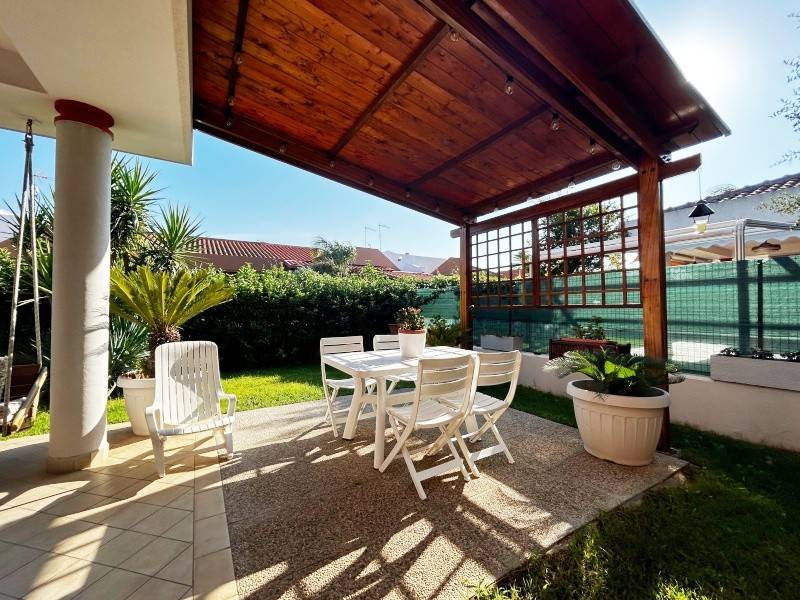 Nel complesso residenziale denominato "Acque Chiare", proponiamo questa villetta a schiera ristrutturata di 90 mq ca. posta al piano terra e composta da: soggiorno pranzo, cucinotto, 1 bagno, 1 camera matrimoniale, 1 cameretta, cortile interno, veranda oltre giardino di 200 mq ca. e posto auto scoperto.