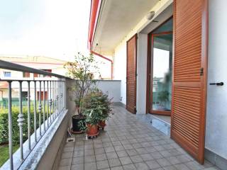 In contesto residenziale e di recente costruzione, ottimo tre locali ad altissima efficienza energetica posto al primo ed ultimo piano. L'immobile, mai abitato, e' caratterizzato da un luminoso soggiorno con cucina a vista che sfocia su un piacevole terrazzino. Il disimpegno, particolarmente spazioso, immette sia nella camera da letto con balcone che nel bagno padronale con vasca. La cameretta, sempre con balcone, e' avvalorata dalla presenza del secondo bagno corredato di box doccia. La soluzione, molto ben curata nei dettagli, e' molto soleggiata e confortevole; il terrazzino si presta a momenti di distensione e convivialita'. I doppi servizi vantano arredi e finiture di pregio. L'appartamento e' collocato in una zona di grande pace e in una strada a fondo chiuso con facilita' di parcheggio; si completa con la cantina e con la possibilita' di acquisto box singolo. E', inoltre, comprensivo di arredamento . Presenti i condizionatori caldo-freddo e il videocitofono.