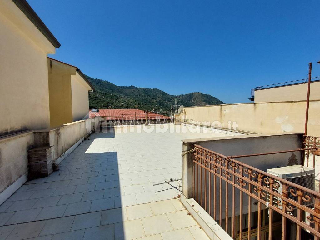 Appartamento al secondo piano di mq 110 circa, composto da cucina, grande salone, due camere da letto, due bagni, balcone e ampio terrazzo panoramico di mq 110 di esclusiva pertinenza dell'appartamento. Vista mare.