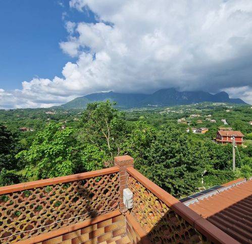 Al primo piano troviamo tre camere matrimoniali e un bagno, oltre un ampio terrazzo coperto con vista Montevergine.