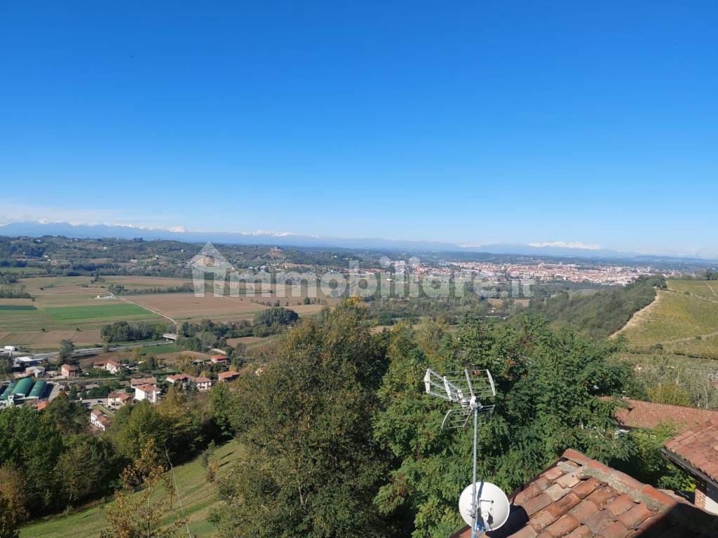 Porzione di casa su 3 livelli, molto panoramica, con vista mozzafiato su Asti, libera 3 lati con cortile giardino privato, 5camere, 2 bagni, terrazzo, 3 locali di sgombero, garage, + ampio locale mansardato