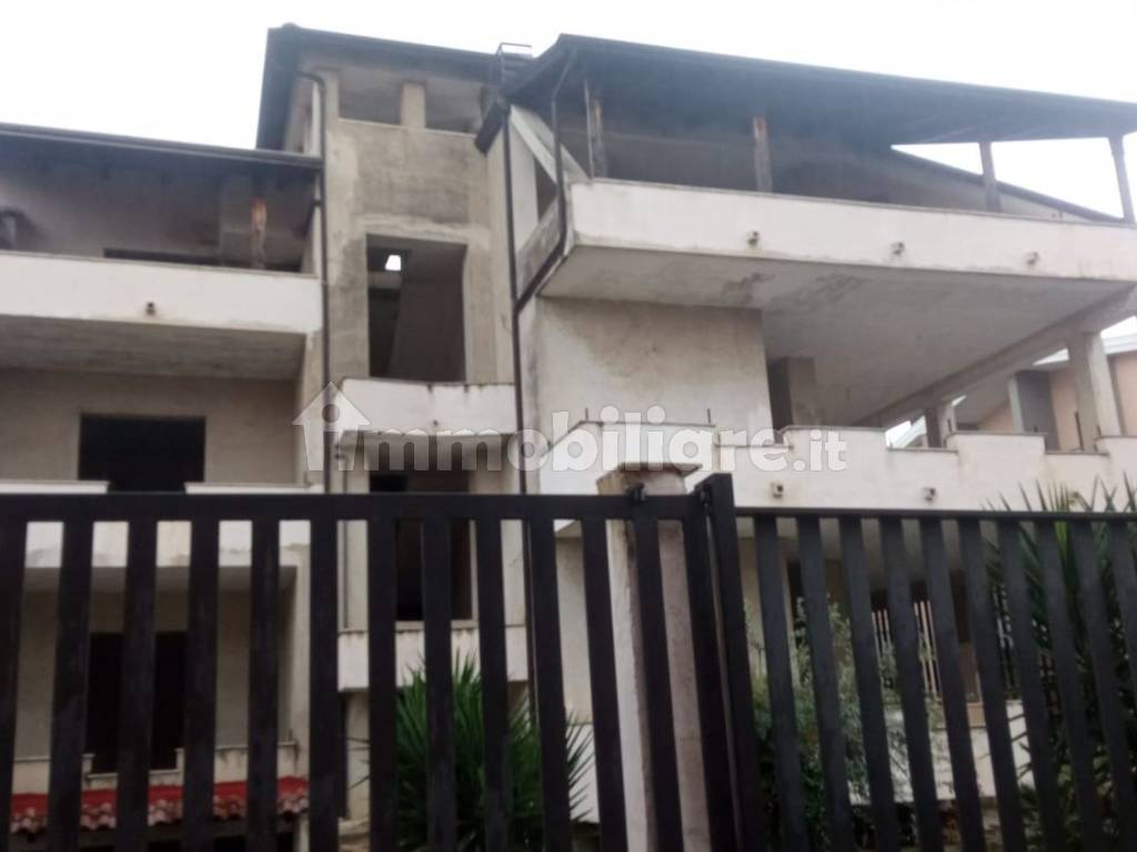 Edificio ad uso abitativo costituito da tre unita'immobiliari cadauno di 180mq, e rispettivamente collegati tra loro tramite banda scala e piu'precisamente piano rialzato costituito da ampio ingresso ampio soggiorno correlato con ampio terrazzino che a sua volta correlato con giardino di pretinenza, ampia cucina abitabile che a sua volta correlata con ampio terrazzino da retro edificio, tre ampie camere da letto piu'due bagni mancanti di riuvestimento, al primo piano sorge l'altra unita'immobiliare oggetto della vendita cosi'costituita da ampio ingresso ampia cucina con ampia balconata terrazzata e ampio soggiorno correlato con ampio terrazzo tre camere da letto ognuno con ampie balconate terrazzate edue bagni mancante di rivestimento ecceto i pavimenti, infine attico mloto carino costituito da ampio soggiornocon ampio terrazzo ampia cucina correlata con ampia balconata terrazzata piu'tre camere da letto ognuna confinante con ampie balconate terrazzate piu'due bagni, mancante di rivestimenti eccetto pavimenti in fine abbiamo un ampio terrazzo di copertura e ampio deposito interrato collegato tramite scala che si possono realizzare 4 box, piu' cantinole e l'edificio per il suo volume ha la predisposizione a creare anche un'acensore.