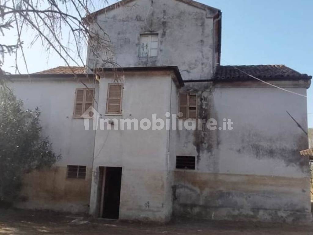 Rif.: 5640 - Ostra (ESCLUSIVA DI VENDITA) Loc. Pianello Casa da ristrutturare affiancata ad un lato e libera su tre lati con corte e terreno agricolo adiacente per circa 20.000 mq. La casa è disposta su tre livelli per totali circa 160 mq. Al piano terra locali magazzino e ripostiglio, al piano primo appartamento e al secondo piano la soffitta abitabile. Nella corte due magazzini di circa 22 e 46 mq trasformabili in garage. Libero subito.