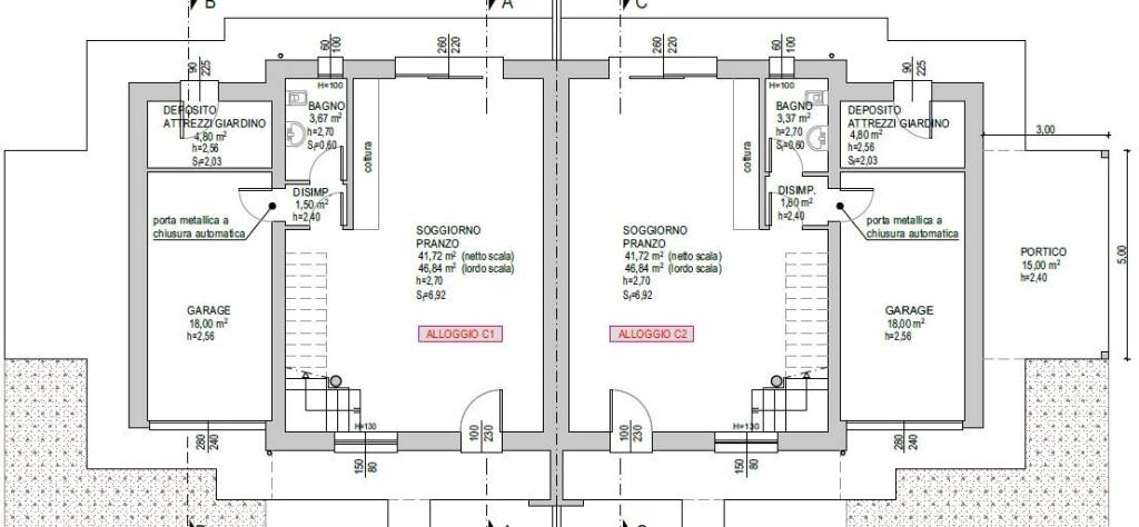 Abbinata di prossima realizzazione sviluppata su due livelli con scoperto privato e caratterizzata da generose metrature.