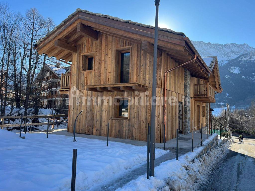 A pochi minuti a piedi dal centro del paese, nella tranquilla e soleggiata frazione di La Saxe, proponiamo in vendita chalet di nuova costruzione composto da due appartamenti.