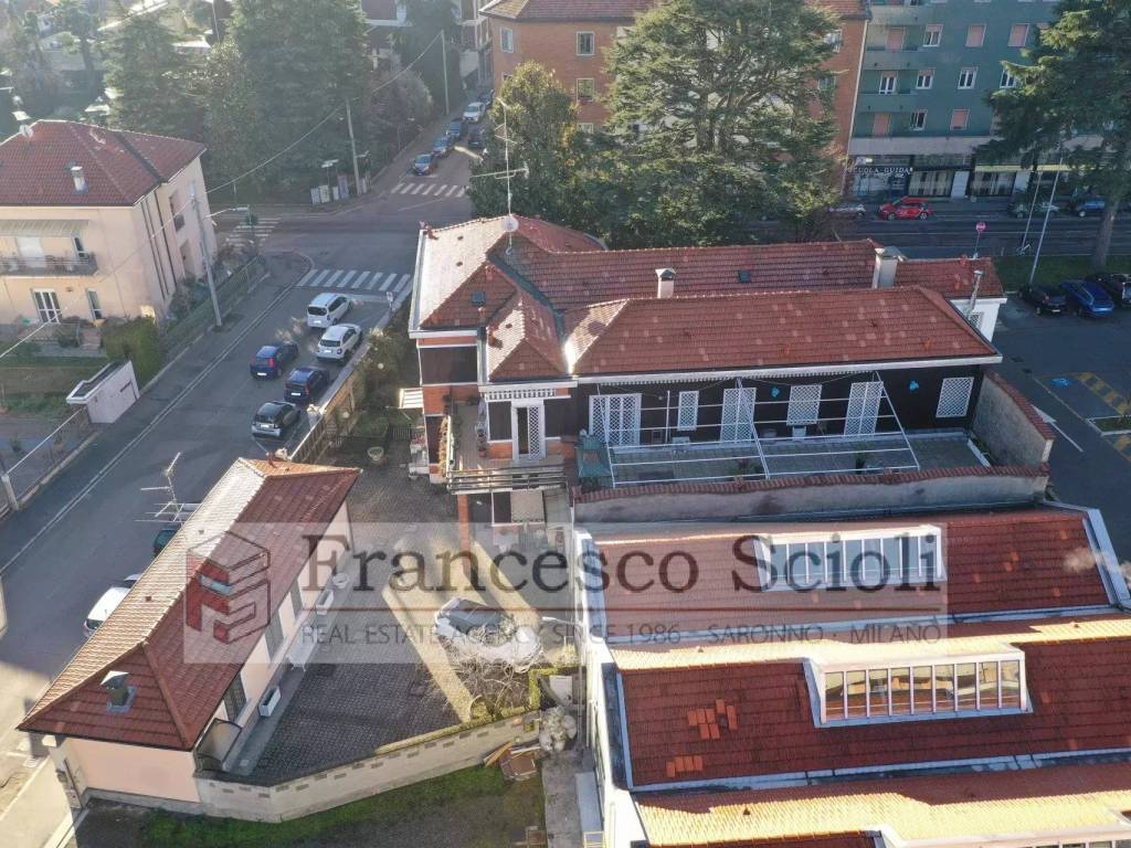In centro a Saronno, proponiamo in vendita una villa con giardino adatta ad ospitare due nuclei famigliari. Annessi alla villa ci sono una dependance, un laboratorio e uno spazio al coperto per il parcheggio di almeno quattro automobili.