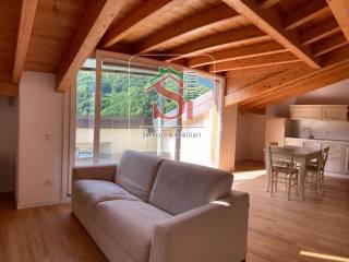 Valle Brembana - Zogno - Centralissimo: esclusivo attico nel centro storico del paese. L' immobile è situato all'ultimo piano di un palazzo storico recentemente ristrutturato con ascensore privato diretto all'appartamento. La soluzione dispone di un ampio e luminoso soggiorno con grande vetrata che consente il passaggio alla terrazza soleggiata tutto l'anno, essendo esposta a sud. Cucina a vista. Zona notte composta da enorme camera matrimoniale, cameretta e bagno con vasca e doccia. Nella parte finale del sottotetto sono stati ricavati dei comodi ripostigli. Travi a vista e parquet. Elementi decorativi in ferro battuto. Riscaldamento a pavimento, parabola satellitare condominiale e predisposizione impianto d'allarme. Doppia porta blindata. Compreso ampio box doppio in larghezza.