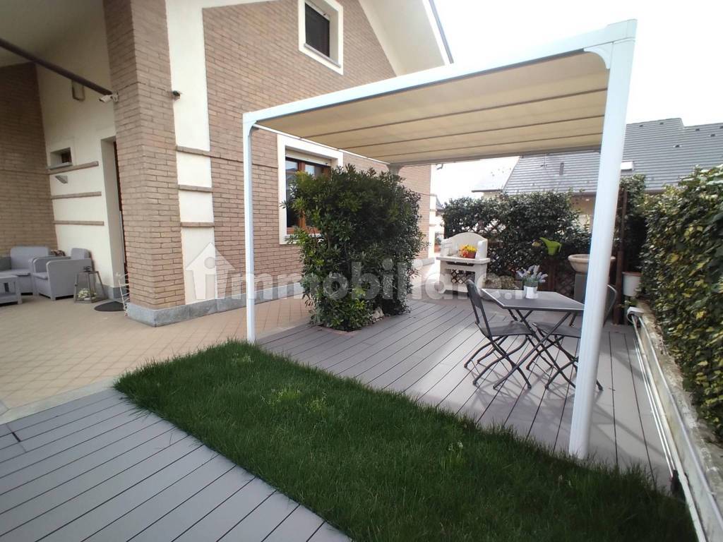 Privato vende recente porzione di bifamiliare libera su tre lati , senza commissioni a terzi, composta da :piano terra da soggiorno living con cucina,camera matrimoniale, bagno.Piano primo,da cui si accede con ampia scala in muratura,2 camere,ampio bagno e cabina armadio.Al piano seminterrato ampia tavernetta con cucina, lavanderia e box per due auto. giardino privato e ampio terrazzo di circa 50 mq. riscaldamento a pavimento in tutti i tre piani, pannelli solari, antifurto,climatizzazione. tapparelle elettriche, zanzariere,impianto irrigazione,videocitofono