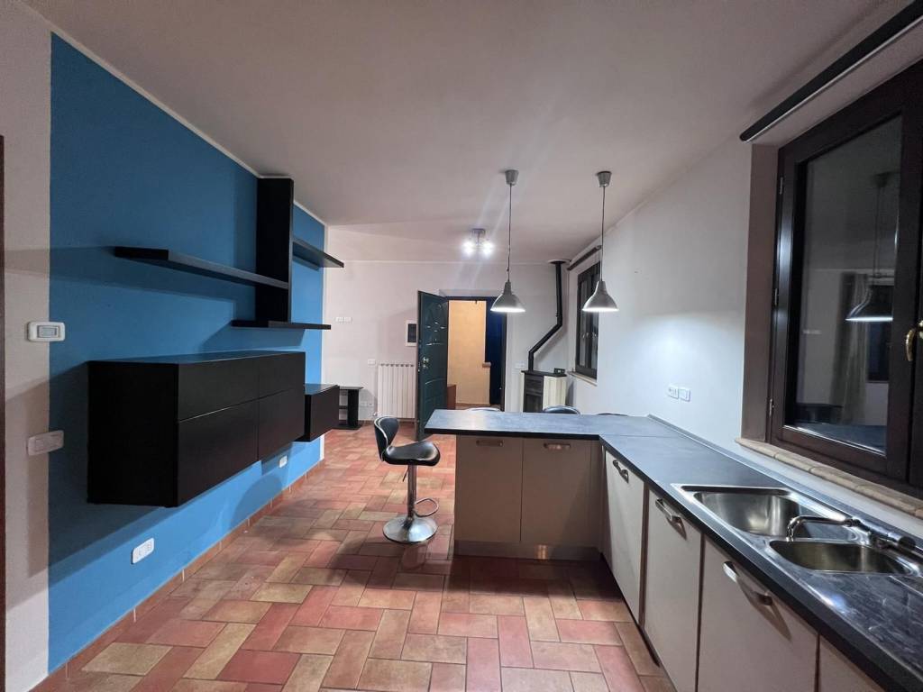 La casa è composta da un soggiorno con cucina a vista, 2 camere, un bagno, corridoio, e terrazza. Alla proprietà è annesso nel piano strada un garage privato, dotato di saracinesca elettrica.