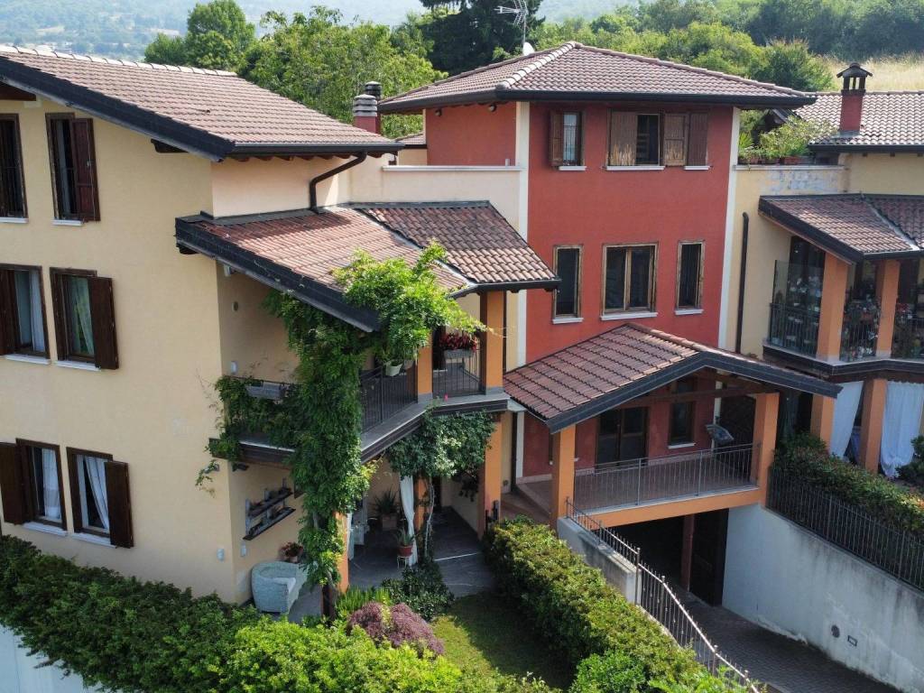 Posizionata in località Aquilini, prima frazione di Brione provenendo da Gussago, proponiamo in vendita questa villetta a schiera di testa facente parte di un residence edificato nel 2005 denominato 'Corte del Dosso' composto da più unità abitative.