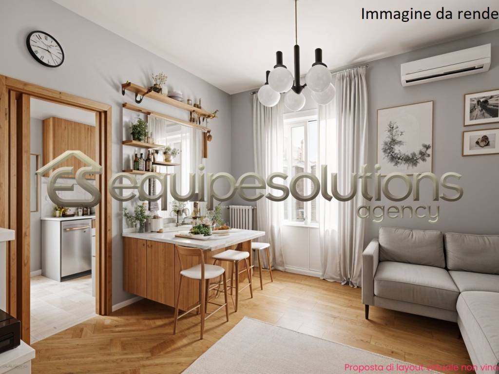 L'ingresso si apre su un ampio e luminoso soggiorno, dotato di infissi e finestre in PVC nuovi, e una cucina abitabile arredata.