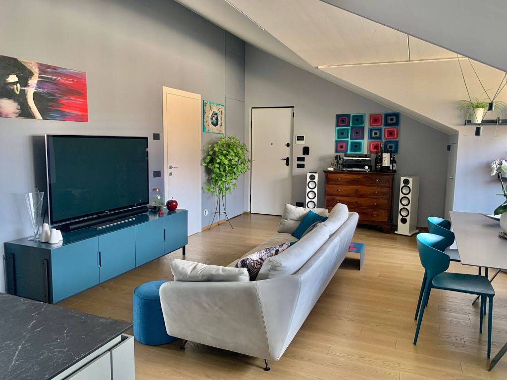 Situato al terzo e ultimo piano di un palazzo d'epoca, l'ingresso accogliente conduce ad un luminoso soggiorno con angolo cottura e uno studio ideale per lo smart working.