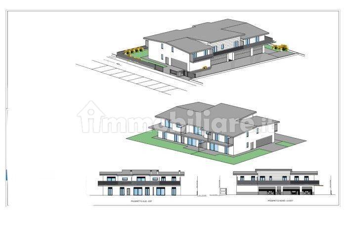 Cazzano Sant’Andrea zona tranquilla, baciata dal sole, nuova costruzione composta da m.3 trilocali e villetta di testa con giardino privato, tutti con doppio box al p.t