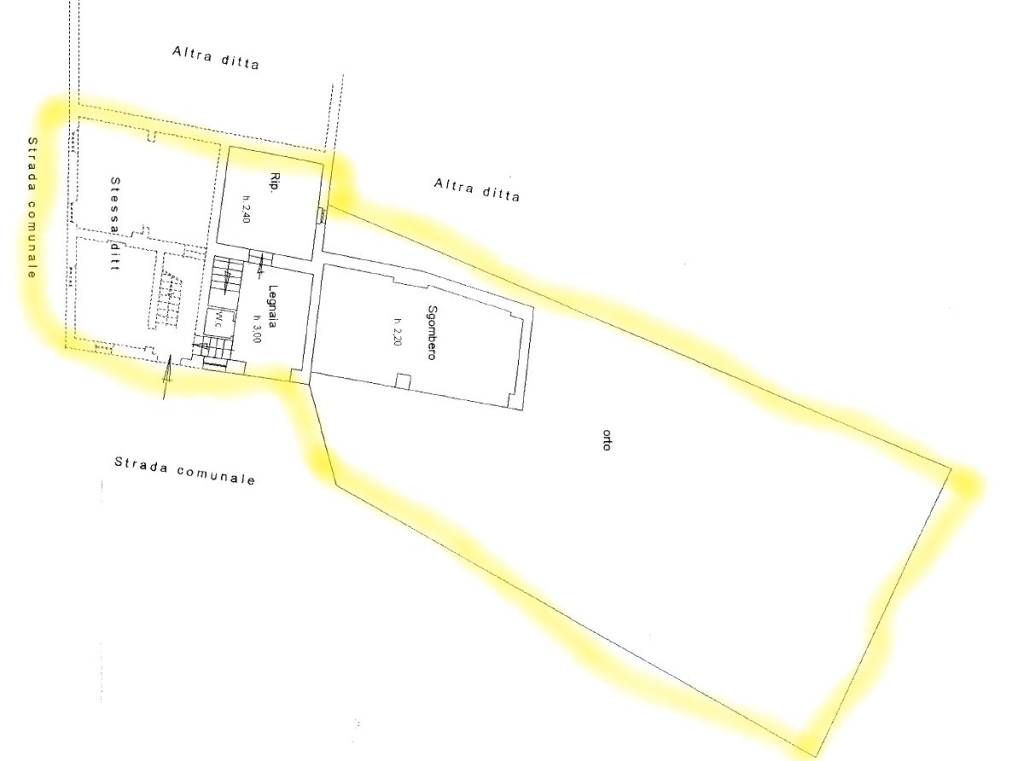 Casa indipendente su tre lati, con accesso diretto sulla piazza principale del borgo (fraz. Costa). Strutturata su due piani, con 6 vani, due bagni (uno oggi utilizzabile), un garage, due cantine, ampio portico e fienile. Abitata fino al 2005; con servizi di elettricità, impianti idrico e sanitario. Riscaldamento autonomo con termo stufa a legna e termosifoni. Da ristrutturare ma senza interventi enormi.