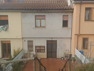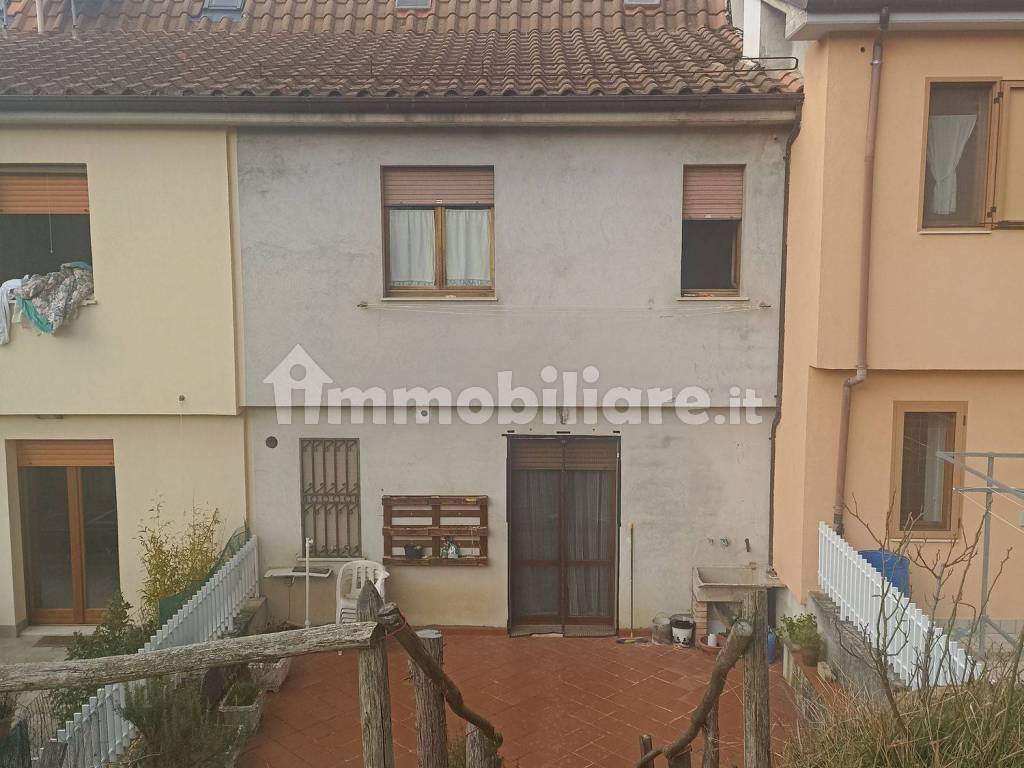 Montefortino FM - adiacente al centro storico e in posizione panoramica sui Monti Sibillini, villino a schiera edificato negli anni '80, in buone condizioni di manutenzione, si sviluppa su tre livelli più uno interrato dove insistono locali accessori quali: ampio garage, deposito, ampia cantina, wc, ripostiglio sottoscala e corte esterna; nei tre livelli superiori troviamo quattro camere, due bagni, ampia cucina con camino, corte esterna pavimentata con accesso al giardino/orto, due balconi. Attualmente l'immobile è occupato da una famiglia il cui contratto di locazione è in scadenza al prossimo mese di novembre.