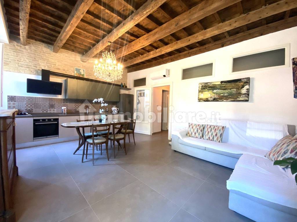 CERVIA - APPARTAMENTO DEI SALINARI COMPLETAMENTE RISTRUTTURATO. In zona centralissima, nelle "Case dei Salinari", si vende splendido appartamento finemente ristrutturato nel 2022, composto da: ingresso su splendido e luminoso soggiorno con cucina a vista, due camere di cui una matrimoniale e una doppia, due bagni. Completa la proprietà una mansarda di circa 30 mq al 2 piano in immobile adiacente, uno spazio esterno dove poter trascorrere momenti di relax e parcheggiare l'auto, una cantina di 32 mq (h. 1.55m) e un piccolo spazio esterno sul retro con bagno di servizio. L'appartamento è stato completamente e finemente ristrutturato nel 2022, viene venduto arredato ed è dotato di riscaldamento autonomo, A/C, infissi PVC doppio vetro e arredi di pregio. Prezzo richiesto: € 650.000 - PER INFO: EMAIL: info@agenziazoffoli.it, TEL. 0544-995261, viale Matteotti 90, Milano Marittima