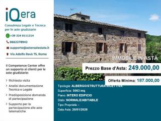 Complesso immobiliare in Comune di Radicondoli, Loc. Bagni alle Galleraie , costituito da un fabbricato di quattro piani con cortile, sul quale insiste un locale interrato ad uso cantina e altro cortile con insistenti due ripostigli e centrale teremica, uno stabilimento termale di un piano fuori terra e due piani sottostrada, cappella privata e terreni