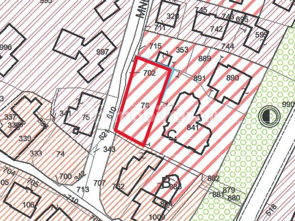 Lotto edificabile di circa mq. 575, in zona molto soleggiata e pianeggiante, con accesso diretto dalla Strada. Trattasi di uno degli ultimi terreni edificabili presenti