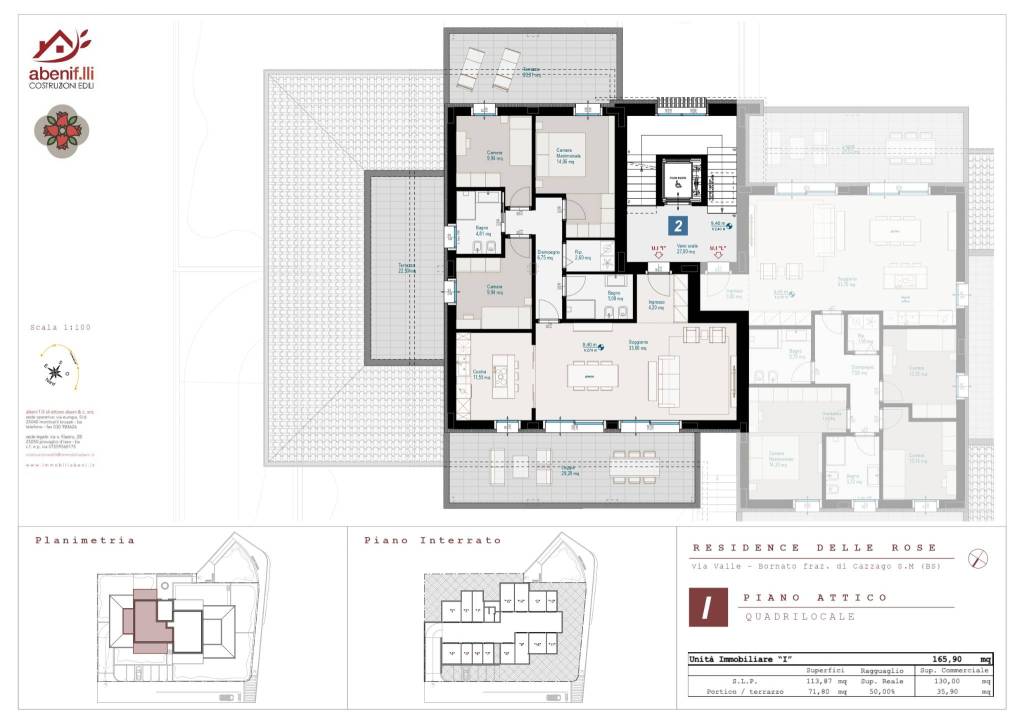 L’appartamento oggetto della descrizione è un luminoso attico quadrilocale con loggia privata e doppia terrazza . Internamente gli ambienti si sviluppano in un ampia zona giorno openspace di 50mq con cucina a vista e accesso diretto all'esclusiva loggia di 30mq. La zona notte offre 3 camere da letto, 2 bagni e ripostiglio.