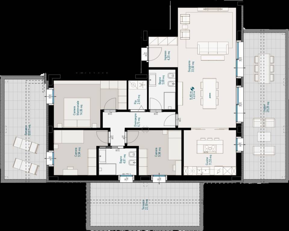 Per garantire le migliori condizioni abitative gli appartamenti sono di dimensioni medio-alte e dotati di grandi terrazze, logge, e giardini privati.