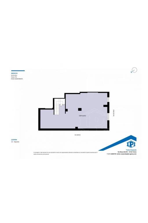 Al piano interrato, collegato da scala interna, troviamo un ampio locale ad uso deposito dotato di finestre con apertura lato via Leonardo da Vinci