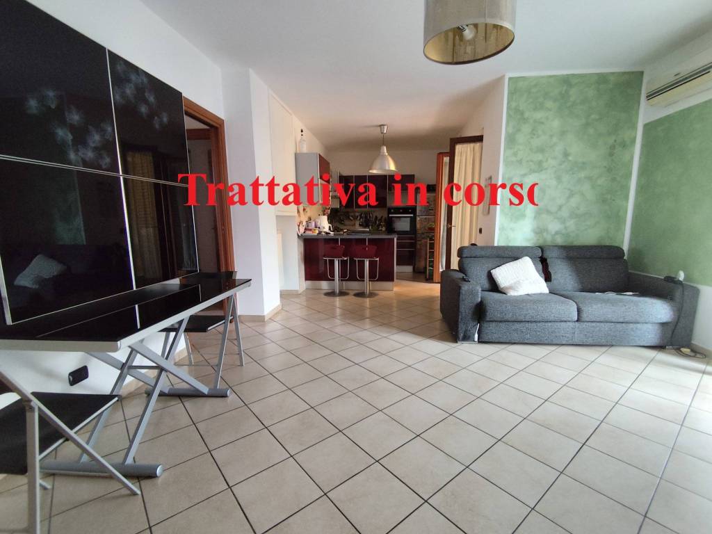 In zona tranquilla a pochi passi dal centro e da tutti i servizi essenziali, vendiamo appartamento seminuovo con posto auto. L'immobile nel 2010 venne acquistato direttamente dal costruttore ed è stato sempre abitato dagli attuali proprietari. La disposizione interna è la seguente: salone con cucina a vista con 2 ampi finestroni che conducono al terrazzo e balcone della zona giorno sul quale è possibile pranzare e fare colazione; disimpegno, 2 camere e 2 bagni di cui uno in camera; e balcone per ogni stanza; Posto auto assegnato di proprietà. La palazzina è completamente recintata e ha un parcheggio riservato alle seconde macchine oppure agli ospiti. Ci sono tutte le utenze quali acqua comunale, luce, gas metano, allaccio in fognatura e fibra. L'immobile è stato mantenuto in maniera impeccabile.