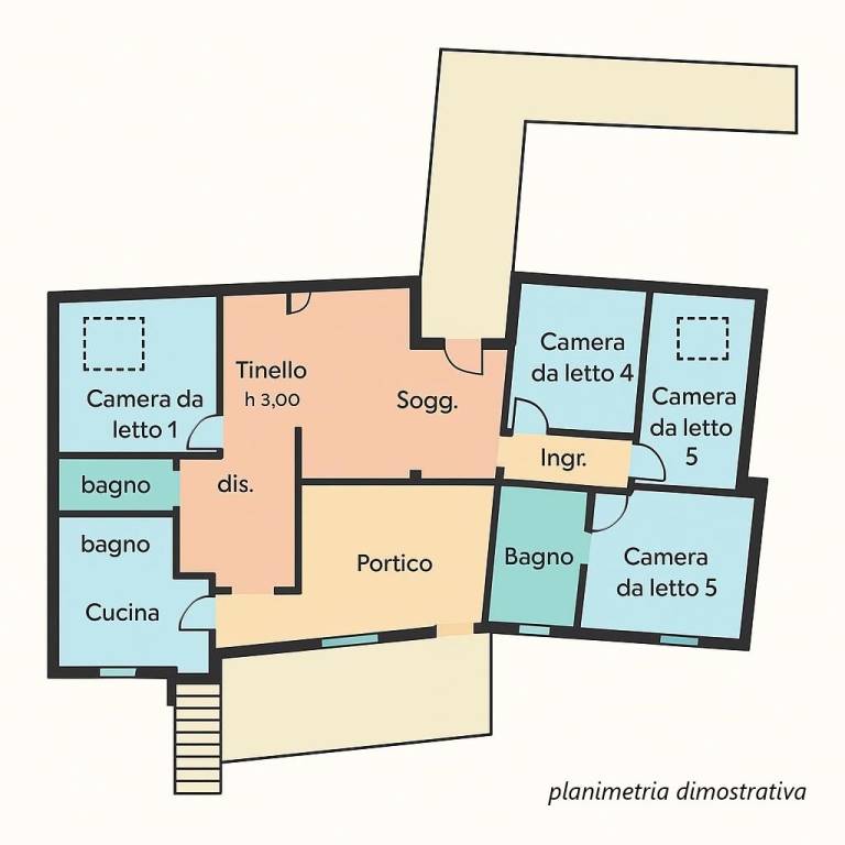 L’elegante villa proposta si sviluppa su una straordinaria superficie interna di circa 205 mq, particolarmente luminosa in ogni vano, vanta ambienti comodi e ben distribuiti, in grado di rispondere con efficienza alle esigenze di una famiglia ma, si presta anche ad essere una struttura ricettiva, potendo fare affidamento agli ampi spazi interni ed a quelli esterni attrezzati. Dall’ampio porticato pavimentato che circonda l’abitazione, rendendolo un eccezionale spazio per trascorre le calde serate estive, o semplicemente per godersi la tranquillità che la zona offre, si accede alla villa, la quale presenta un ampio e confortevole open space di circa 80 mq, decorato con pareti in pietra e ampie vetrate che affacciano sul giardino. La cucina a vista e i due camini a legna che insistono in questo regale soggiorno, lo rendono un luogo caldo ed accogliente, oltre che funzionale. La zona notte invece, si compone di ben 5 camere da letto, ognuna con bagno privato e 3 camere vantano anche l’acceso diretto al giardino. Ulteriore gioiellino della villa è l’ampio terrazzo, da cui si accede attraverso un’elegante scalinata in pietra dove è possibile anche parcheggiare sino a 4 auto.