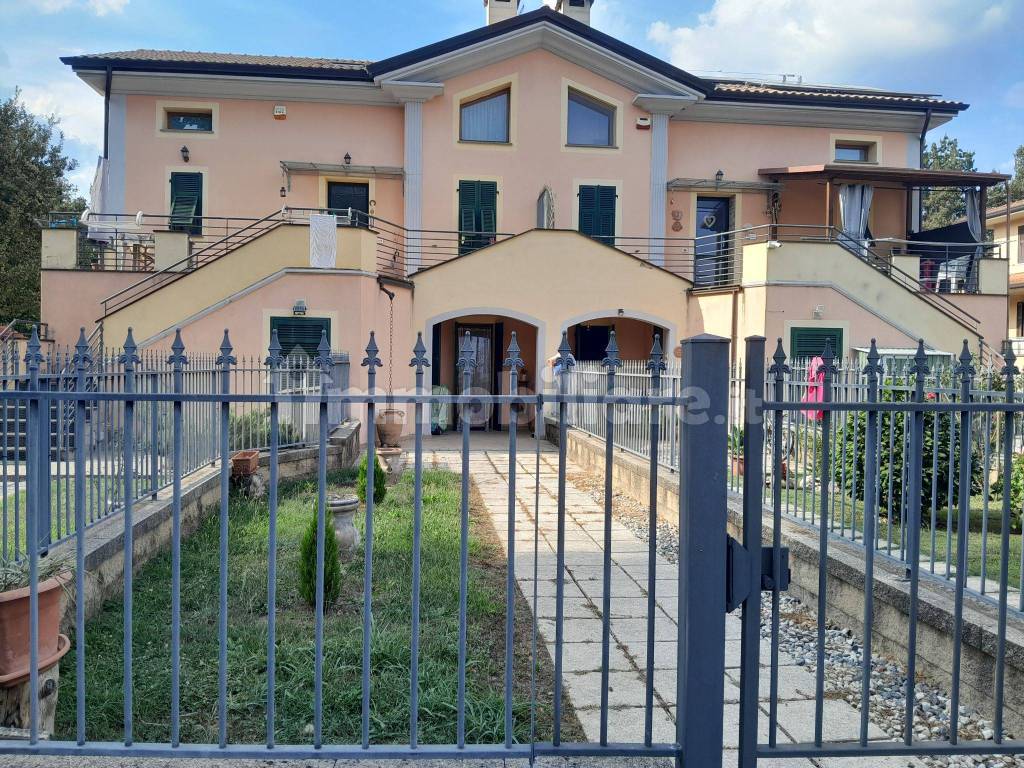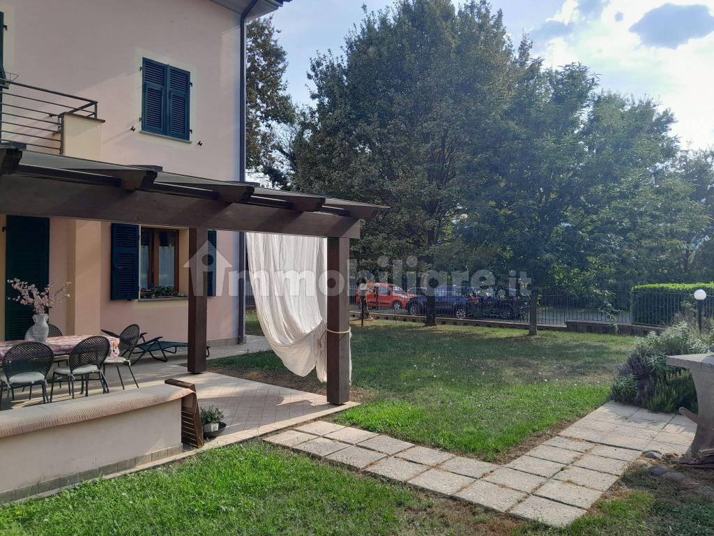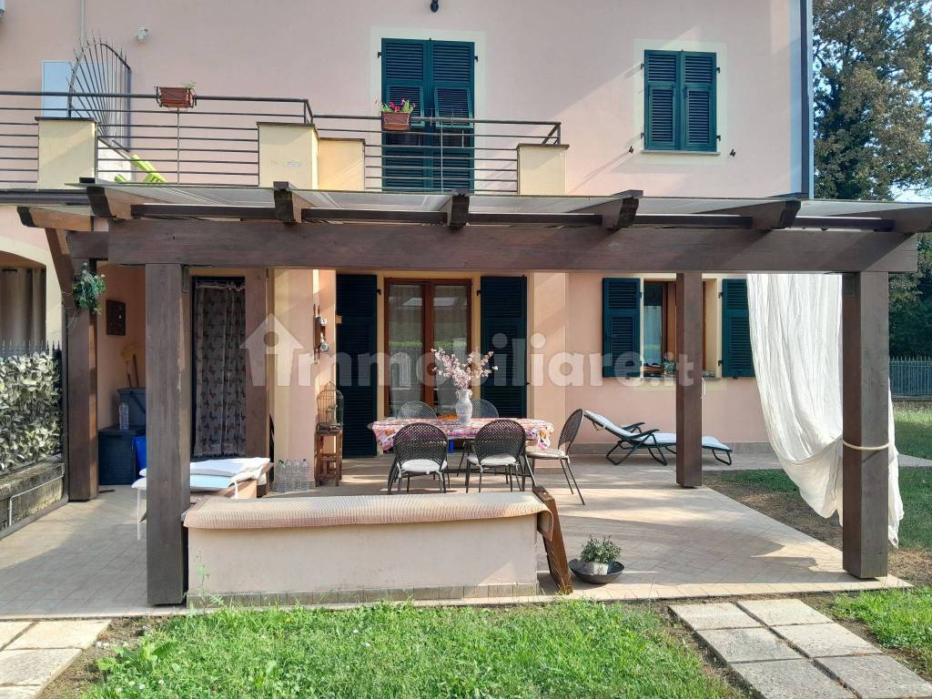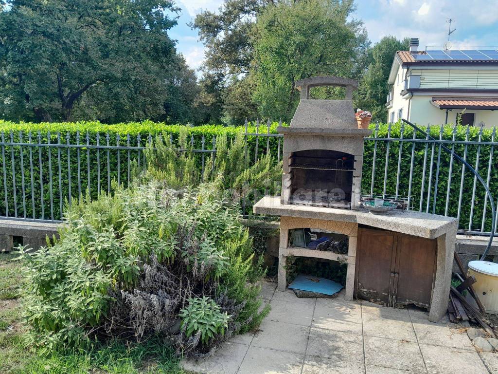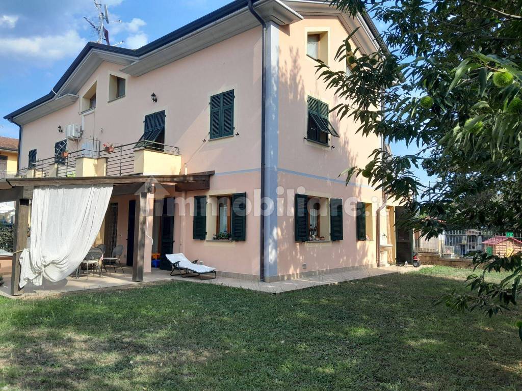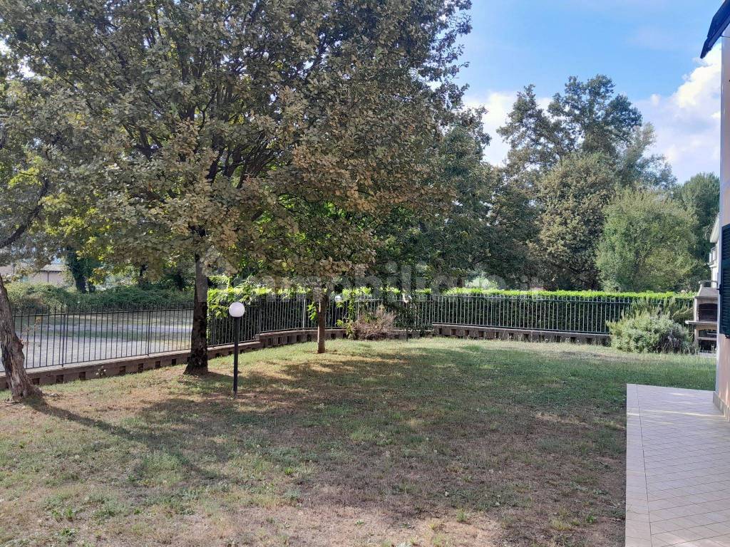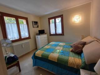 Appartamento pari al nuovo in villa quadrifamiliare di recente costruzione posto al piano terra con doppio ingresso, doppio giardino, di cui uno alberato, con zona barbecue e porticato in legno, composto da ampio ingresso living con angolo cottura, due camere da letto, due bagni e un ripostiglio/lavanderia. Infissi in doppio vetro e porta blindata. Completa l'immobile un doppio posto auto all'interno del cortile condominiale chiuso da cancello automatico. Possibilità di vendita ammobiliato come da foto. Prezzo trattabile.