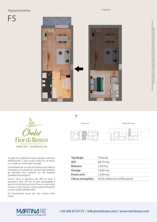 Appartamento "F5". Trilocale soppalcato con balcone, box auto e posto auto di pertinenza.