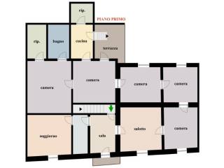 Nei suoi 350 metri quadri trovi ben cinque camere da letto tutte molto ampie, due soggiorni ed una sala d’attesa, cucina e due ripostigli grandi, terrazzo e due bagni.